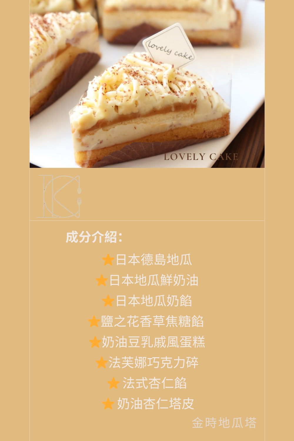 金時地瓜塔 / 切片,Lovely cake 樂芙尼手工蛋糕