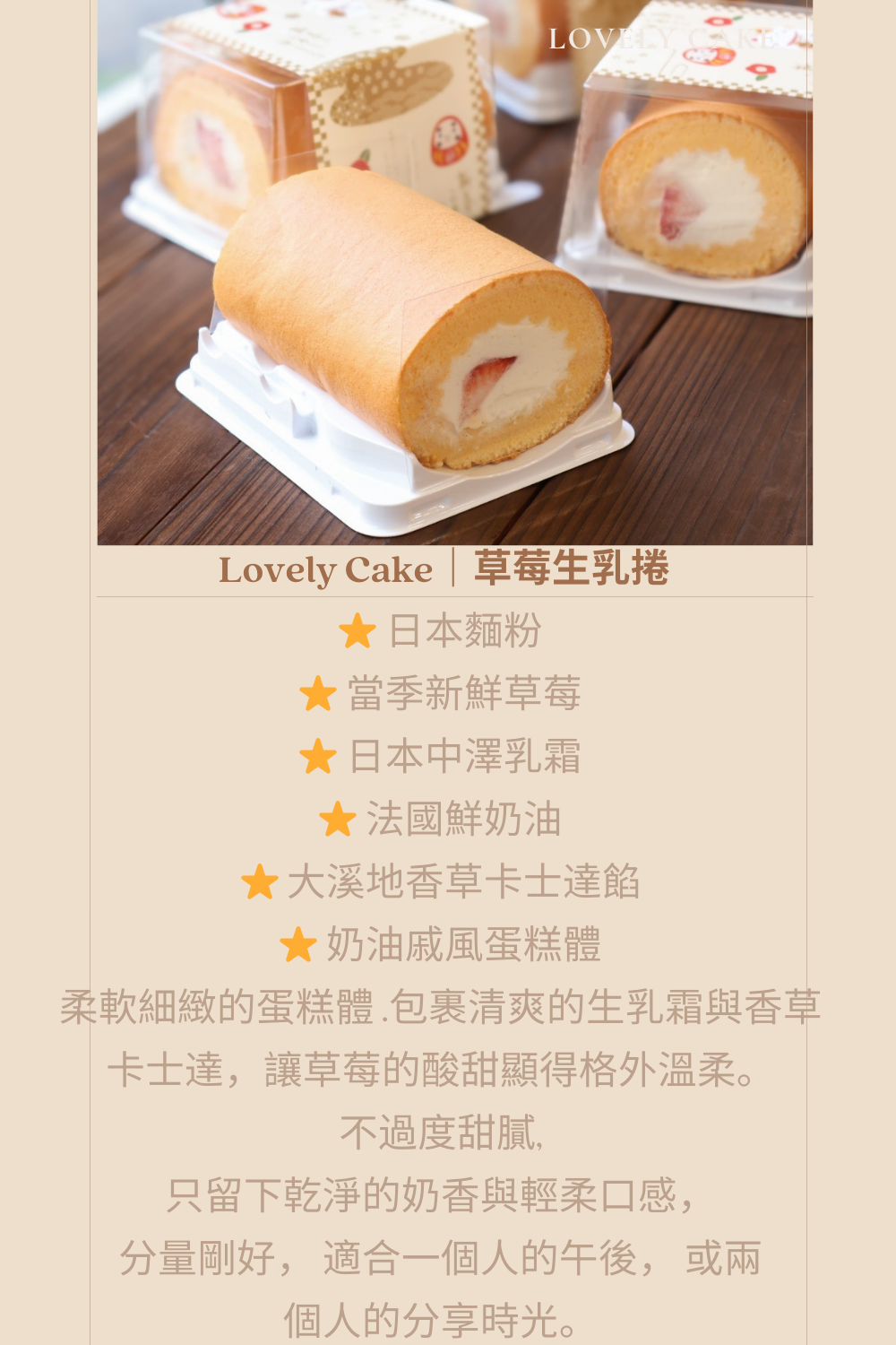 草莓生乳捲/條 (每週二.三 暫停出貨),Lovely cake 樂芙尼手工蛋糕