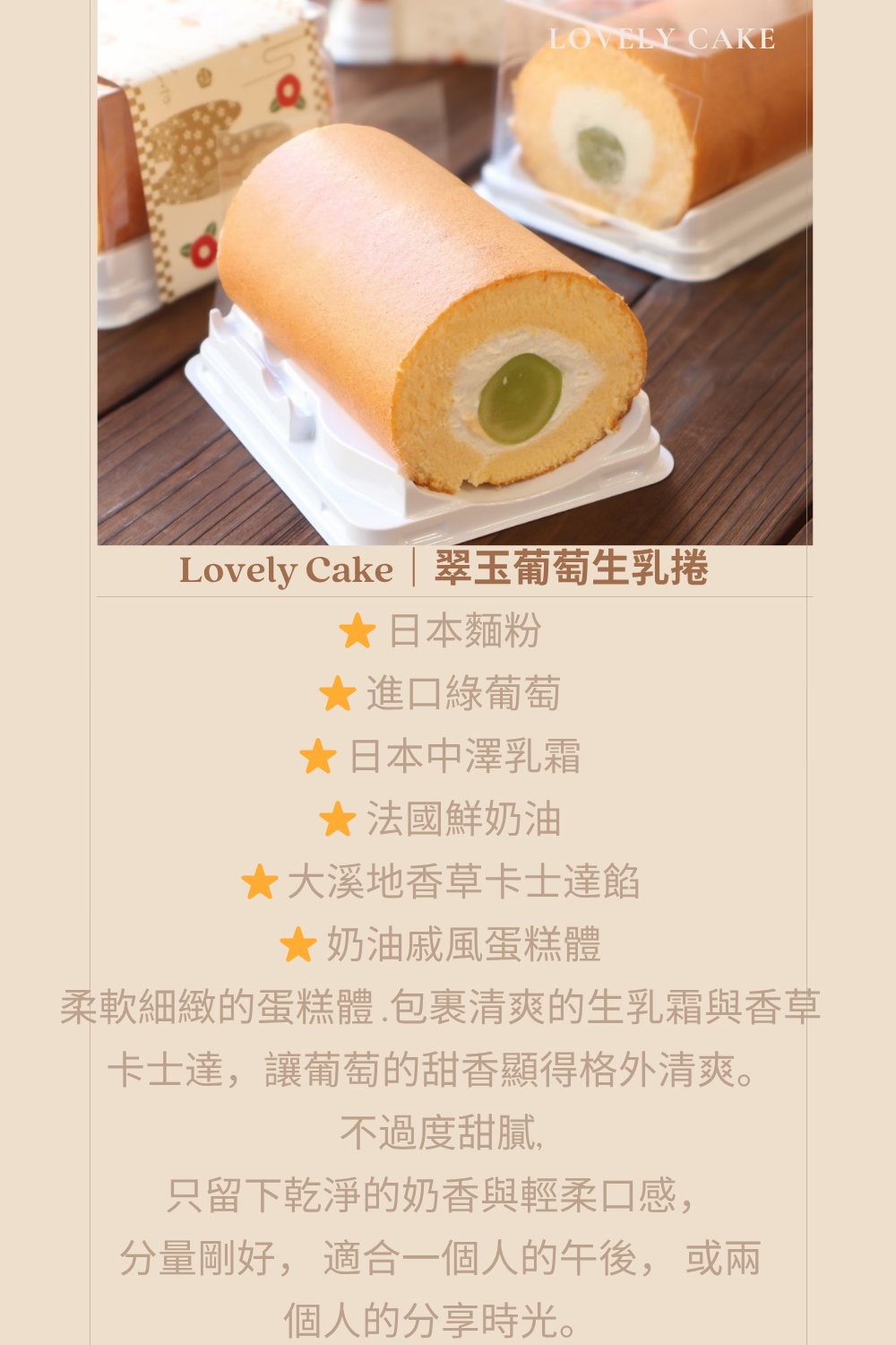 翠玉葡萄生乳捲/條 (每週二.三 暫停出貨),Lovely cake 樂芙尼手工蛋糕