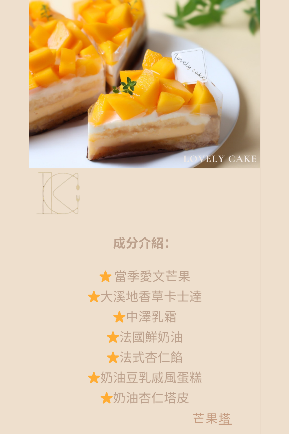 芒果塔 / 切片-(5/7~5/10暫停出貨),Lovely cake 樂芙尼手工蛋糕